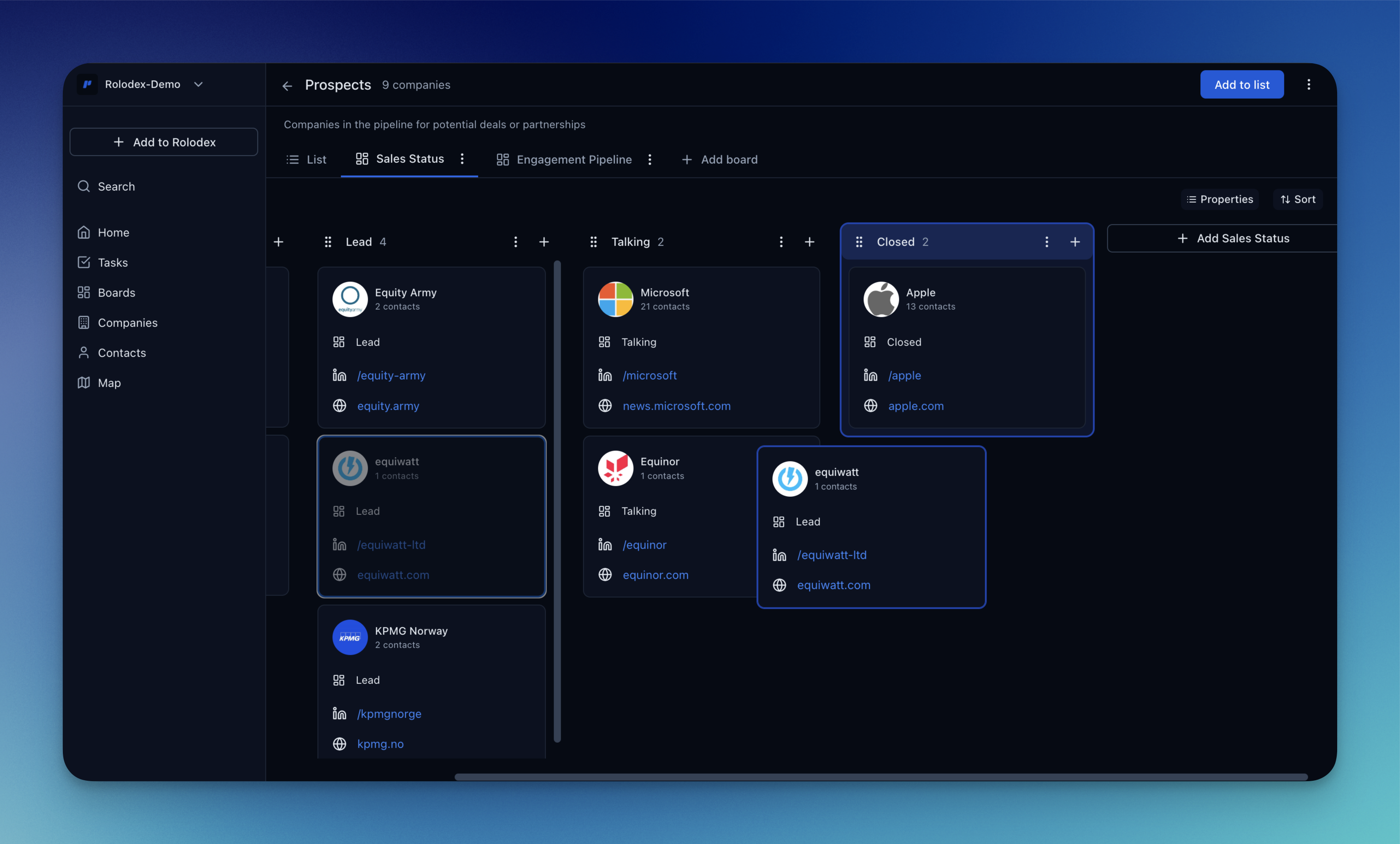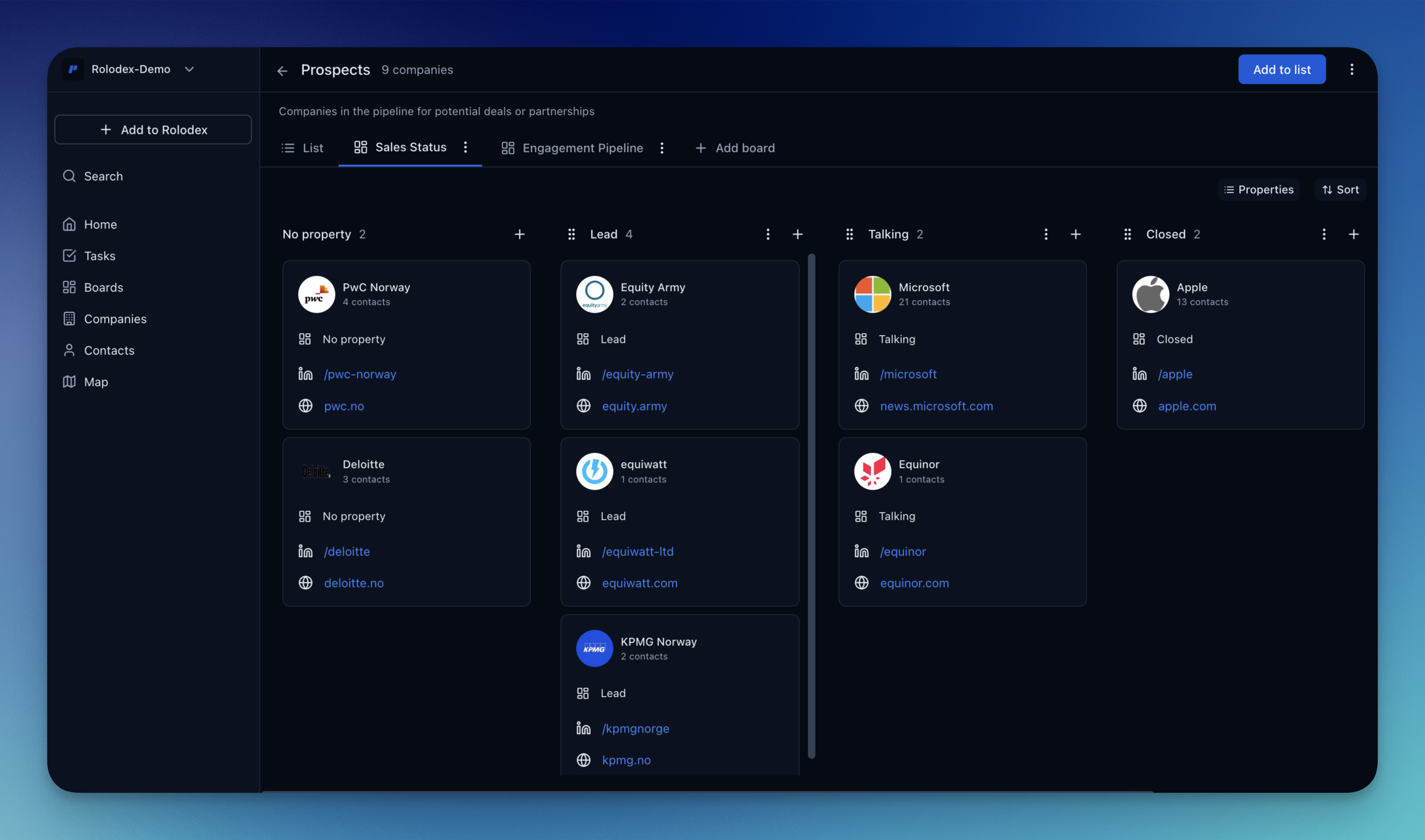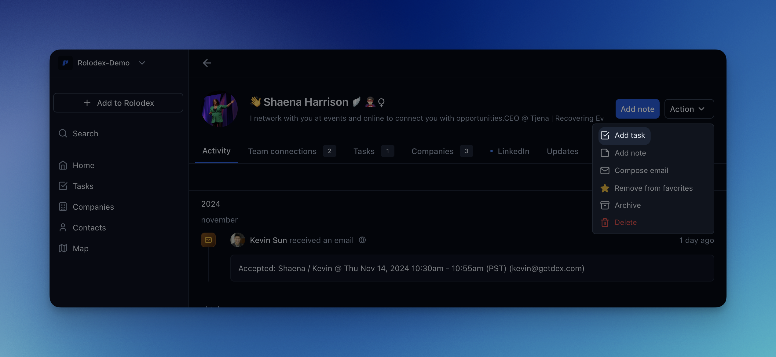 With Rolodex, you can easily visualize and comprehend the geographical distribution of your network. Simply import your contacts or sync from LinkedIn, and Rolodex will map them based on their specified locations or addresses.